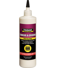 Titebond Tongue & Groove Flooring Glue can be installed using the continuous bead method. When using this method, a water-resistant joint is created. Follow the flooring manufacturers’ directions for proper positioning of the adhesive bead. Some manufacturers prefer gluing the top of the tongue and others prefer gluing of the groove. Titebond Tongue & Groove Flooring Glue is the professional installer’s choice for either method.