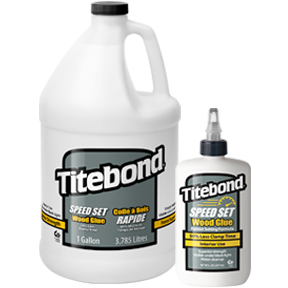 Titebond Speed Set Wood Glue is an extremely fast-setting, high solids PVA adhesive. It provides exceptional gap filling properties developing a bond stronger than the wood itself. This product offers excellent sandability, unaffected by finishes, and increases productivity through its shorter clamp time with no increase in viscosit...